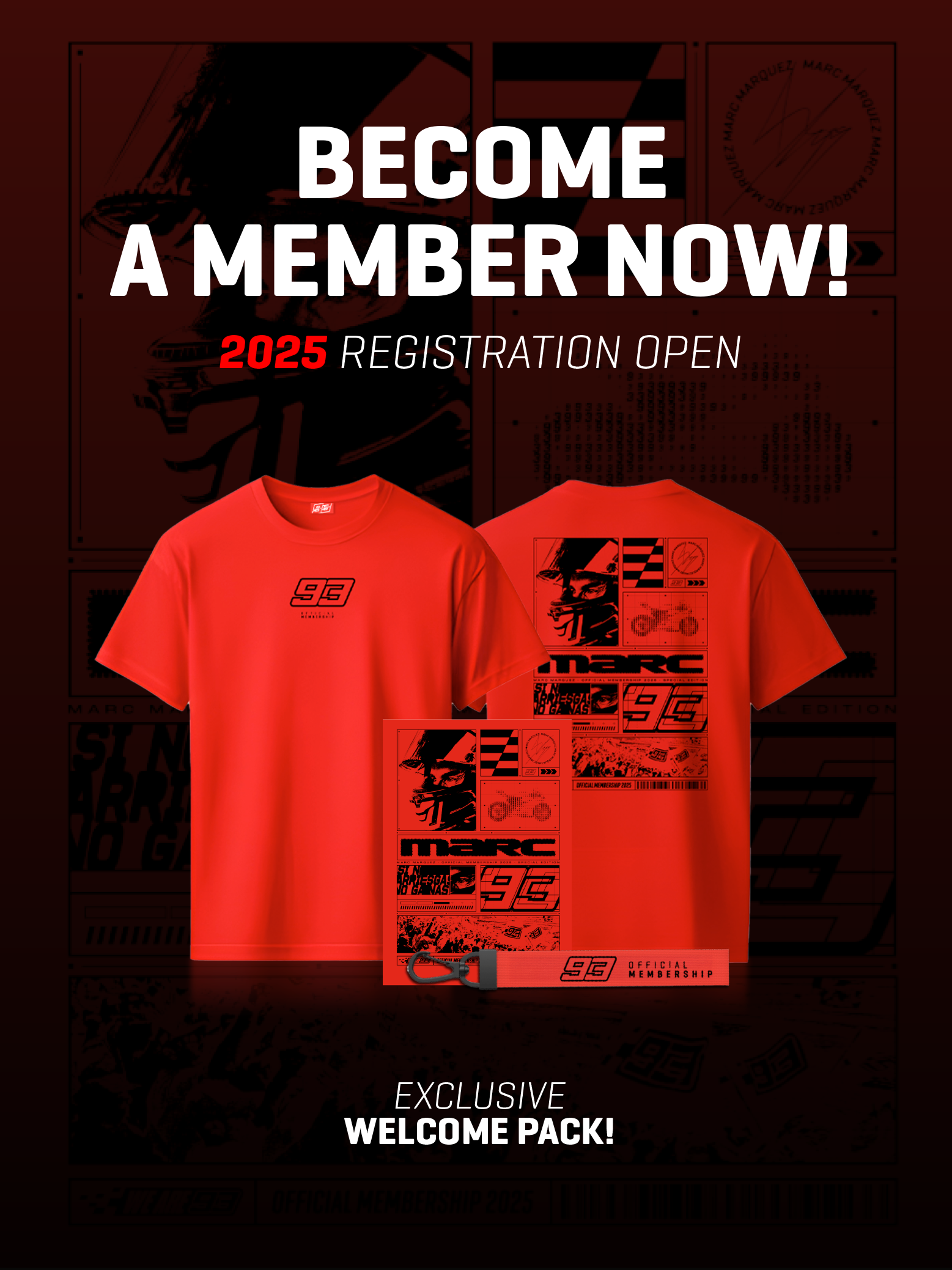 Live the passion for Marc Marquez through We Are 93. Become part of the official community of fans and get an exclusive welcome pack and enjoy all the benefits!